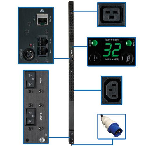Сетевые удлинители PDU Monitored 230V 32A 7.4kW 36 C13; 6 C19 IEC-309 Vertical 0URM