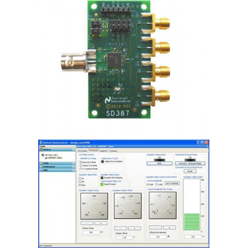 Описание/функция SD387EVK is an evaluation kit designed to demonstrate the performance and capabilities of the LMH0387 3 Gbps HD/SD SDI Configurable I/O Adaptive Cable Equalizer / Cable Driver